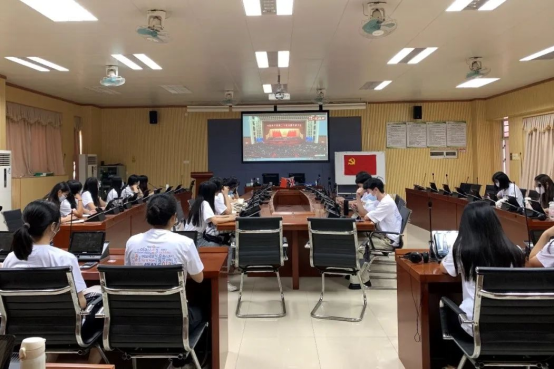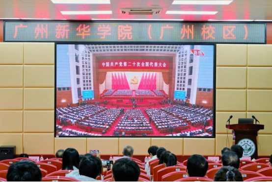 广州新华学院组织广州、东莞两校区党政领导干部、师生党员代表线下集中观看党的二十大开幕会盛况直播
