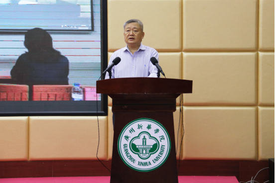 王庭槐校长首先代表学校向2022级逸仙新华班全体同学表示热烈的欢迎和衷心的祝贺。他表示,我校自2014年组建第一届“逸仙新华班”以来,多年来不断完善顶层设计,整合学校资源,持续创新“逸仙新华班”的教育实践和人才培养,现已建成多层次、多学科交叉、符合优秀应用型人才成长规律的课程体系,形成了独具特色的“1234”人才培养模式。在接下来四年的学习生活中,希望各位同学珍惜宝贵的学习机会,充分利用“逸仙班”优质的教育平台和资源,开启“别具一格”的学习体验之旅。