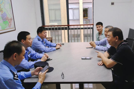 凤凰派出所所长蔡愈焕对王庭槐校长一行的到来表示热烈欢迎,对学校的关心表示感谢,并充分肯定了我校在“平安校园”建设中取得的成绩。他表示,在学校党政领导的高度重视和关心支持下,学校近年来持续加强校园人防、技防、物防力量,为校园及辖区安全稳定工作奠定了一定的基础,双方还建立了良好的协调沟通机制,在政治安全、治安综合治理、突发事件应急处置、电信网络诈骗防范等方面高度配合,密切协作,共同推进更高水平的“平安校园”和“平安凤凰”建设。在疫情防控期间,学校精准落实各项疫情防控措施,师生员工积极协助凤凰派出所疫情防控工作,尤其在近期广州市疫情防控的严峻形势下,学校每日安排两班次学生志愿者参与凤凰派出所电话核查流调工作,切实为广州疫情防控工作贡献了“新华力量”。他表示,今后凤凰派出所将继续加强校地联动,形成合力,进一步巩固联防联控机制,以更高的标准、更严的要求、更实的举措共同做好学校安全稳定工作。
