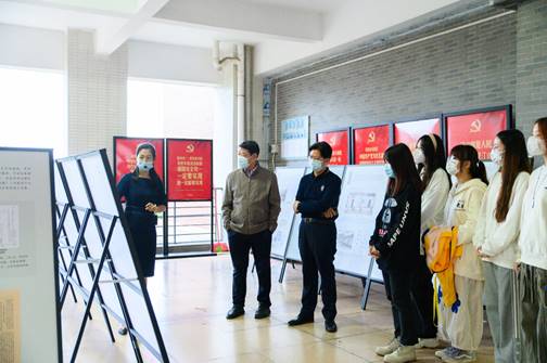 我校党委书记郝登峰、副校长李中生与同学们一同看展
