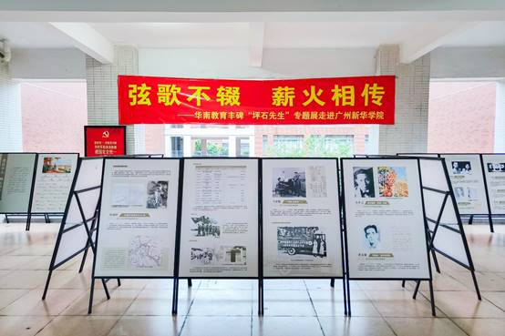为进一步激发广大师生爱党、爱国、爱社会主义的热情,引领师生永远跟党走,奋进新征程,11月23日起,广州新华学院(以下简称“我校”)联合东莞展览馆,在东莞校区党史学习教育展厅举办《弦歌不辍 薪火相传——华南教育丰碑“坪石先生”专题展》,吸引众多师生前来观展。