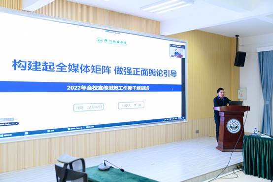 我校党委宣传部(新闻中心)副主任李波作“构建起全媒体矩阵,做强正面舆论引导”专题培训