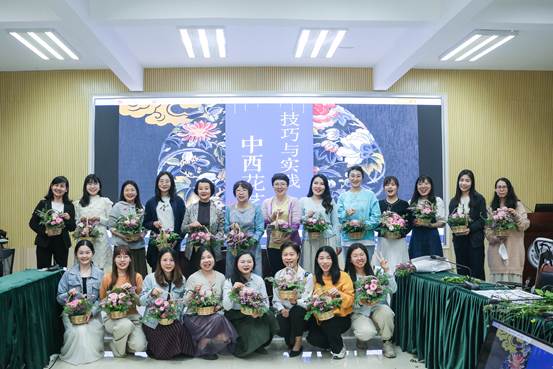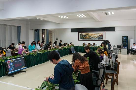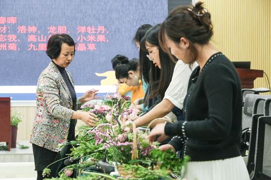 我校校外创业导师、吾易居文创空间杨旻老师以“中西花艺-技巧与实践”为主题开展花艺教学。杨旻向在场女教职员工讲授了花艺的基础知识,重点对中西方文化差异在插花技巧、造型等方面的体现进行了讲述、比对和现场示范。大家在老师的指导下动手实践,完成了一个个错落有致、赏心悦目的插花艺术作品。