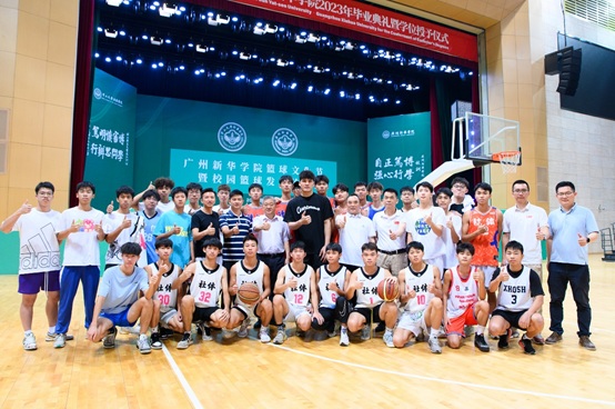 备受青年学子尤其是篮球爱好者欢迎的他,现场展示了赛场上的拼搏风采,并与同学们热情地交流、合影留念。在与广州新华学子们交流后,陈国豪表示,广州新华学院校园篮球文化氛围浓郁,同学们青春阳光、朝气蓬勃。他在活动现场祝愿同学们学业进步、球技大涨、前程似锦!祝广州新华学院越办越好!