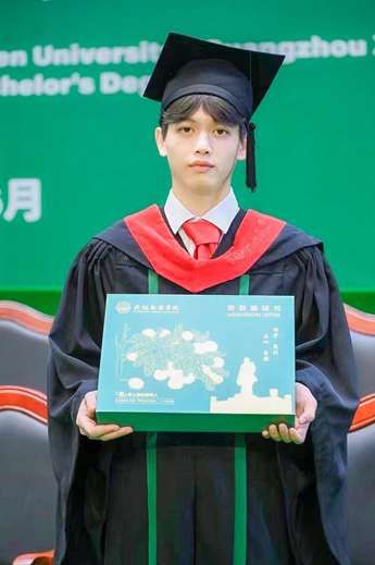 2023届毕业生手捧广州新华学院录取通知书盒子欢迎2023级新生
