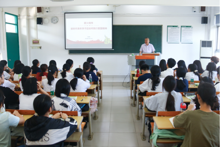 10月15日,广州新华学院(以下简称“学校”)校长王庭槐教授在广州校区,为药学院2025级新生讲授以“薪火相传,新时代青年学子应如何践行爱国精神”为题的“思政第一课”。