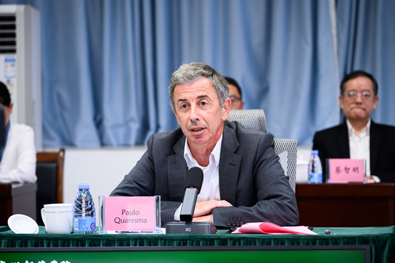 来访学校代表、埃武拉大学中国事务代表保罗·夸雷斯马讲话
