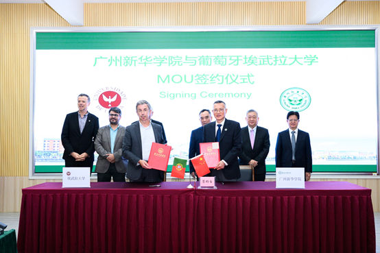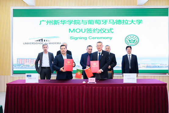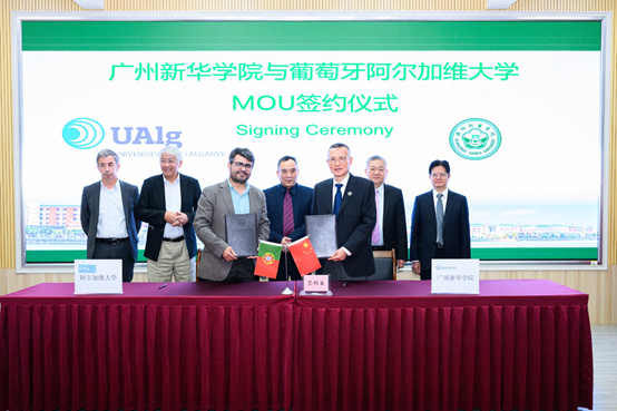 10月29日,中葡长寿健康科技研发联盟代表团一行访问广州新华学院,实地参观校园环境,并出席中葡“教育科研人才一体化”合作座谈会暨签约仪式。刘荣海董事长,学校领导班子成员,有关部门负责人,以及信息与智能工程学院、国际学院、药学院、健康学院、艺术设计与传媒学院、外国语学院葡萄牙语专业师生代表参加活动。会议由学校副校长马龙海主持。