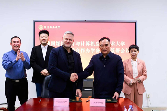 12月6日,广州新华学院与德国媒体设计与计算机应用技术大学(MDH)合作备忘录签署仪式在东莞校区举行。双方将围绕数字媒体、计算机应用技术等领域,共同开发实践导向的国际化课程,探索学生联合培养与师资交流项目。