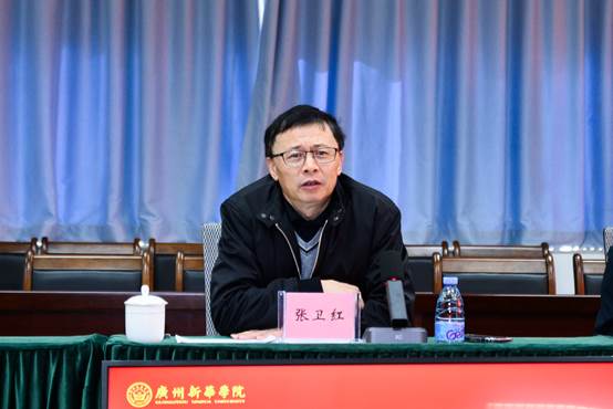 张卫红在讲话中高度评价了广州新华学院在应用型人才培养与地方经济服务方面所做出的努力与贡献。他指出,东莞市社科联与社科院一直致力于推动社会科学研究与服务地方经济社会发展,通过搭建学术交流平台、组织科研项目申报、提供决策咨询服务等多种方式,为东莞乃至粤港澳大湾区的经济社会发展提供了有力的智力支持。此次到访,希望与学校在科研项目申报、师资建设、学术研究及成果转化等方面开展更加紧密的合作,共同为地方经济社会发展贡献力量。