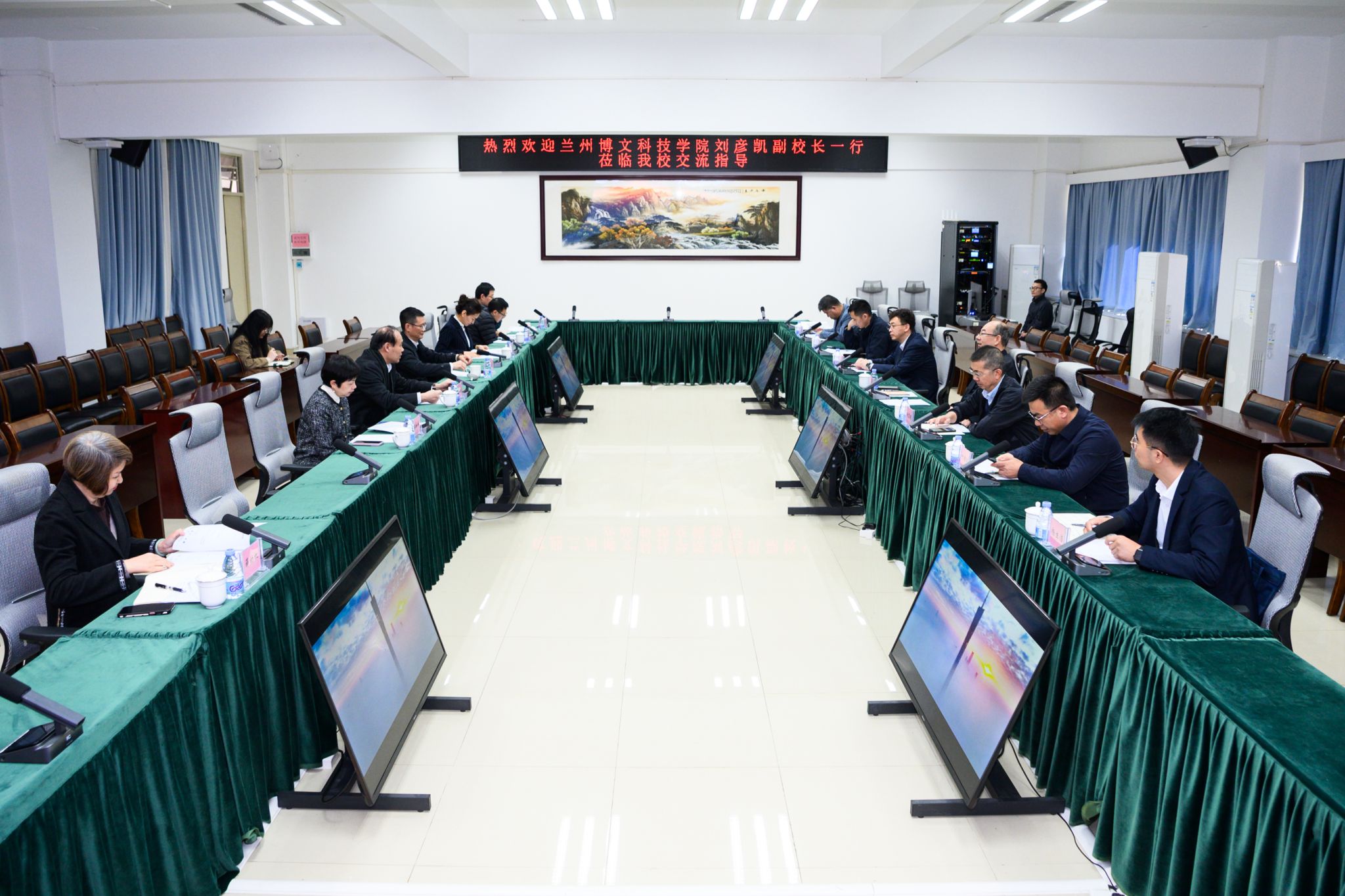 下午,两校分别以校领导研讨、部门对接交流两个层级展开分组讨论。校领导层围绕评估指标体系优化、迎评工作统筹等议题进行交流;人力资源管理处、发展规划与评估处、财务处、设备与实验室管理处、校园规划建设办公室等部门负责人与兰州博文科技学院对应部门“一对一”交流,针对具体问题展开深度探讨。