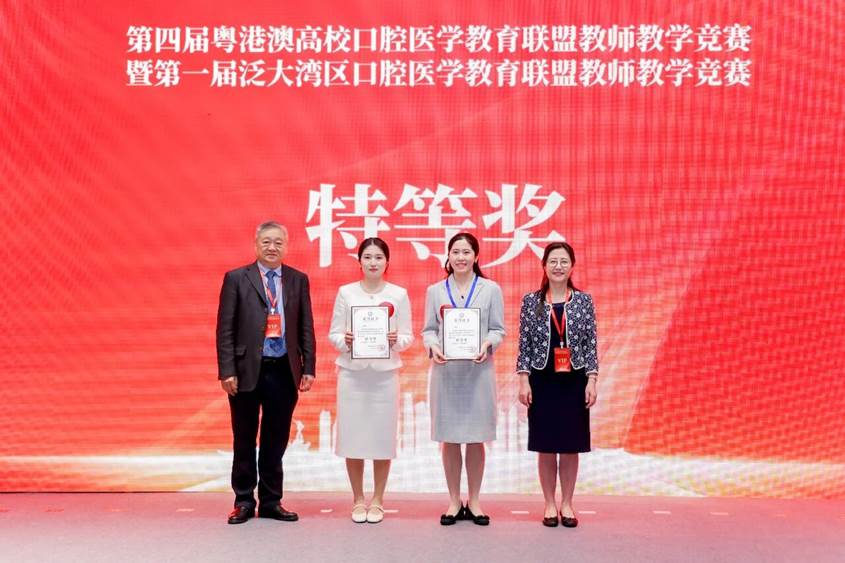 此次竞赛更是吸引了众多口腔医学教育精英的参与。广州新华学院校长、国家级教学名师、中山大学中山医学院教授王庭槐受邀担任特邀评委组长。他宣读了评委点评规则与纪律,确保赛事公平公正,并以深厚的学术底蕴和独到的专业视角,为参赛教师提供精准指导,并为荣获特等奖和一等奖的选手颁奖。获奖选手包括:获得特等奖的中山大学姚依彤、广州医科大学樊晓淼;获得一等奖的广西医科大学侯玉妹、南方医科大学谢跃强、广东药科大学殷金萍等。