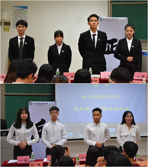 本次比赛由正方法学院辩论队一辩黄韫、二辩陈淼、三辩陈河涛、四辩林汉武以及反方会计学院辩论队一辩黄晴怡、二辩罗嘉盛、三辩黄海舟、四辩冯晨茵就“这是不是一个看脸的社会”展开了激烈的辩论。