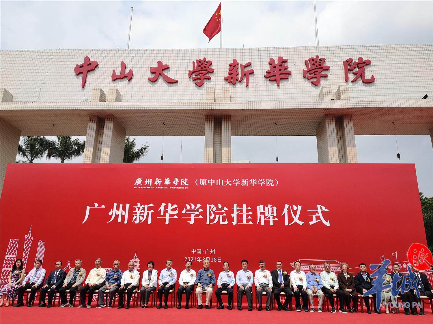 3月18日上午,广州新华学院(原中山大学新华学院)正式举行揭牌仪式。广东省教育厅、广东省科学院、广东省社会组织管理局、中山大学等相关领导及师生代表出席活动。