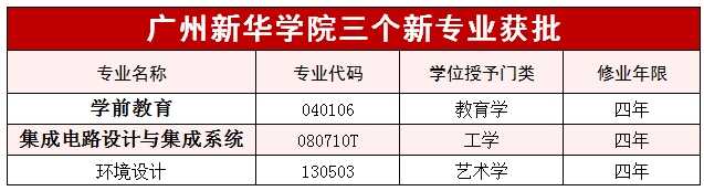 日前,教育部发布了《教育部关于公布2023年度普通高等学校本科专业备案和审批结果的通知》(教高函〔2024〕6号),广州新华学院学前教育、集成电路设计与集成系统、环境设计3个专业获教育部审批通过。至此,该校拥有60个本科专业,涵盖经济学、法学、教育学、文学、理学、工学、医学、管理学、艺术学9个学科门类。