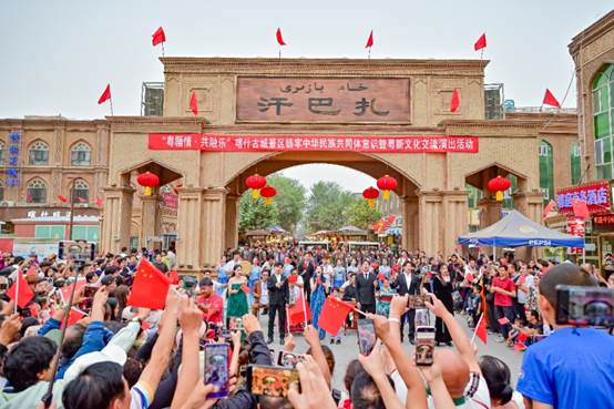 时值新疆维吾尔自治区成立70周年,为弘扬中华优秀传统文化,促进粤新两地人文交流,9月14日,由广东省对口支援新疆工作前方指挥部支持的“粤疆情・共融乐”文化交流演出在喀什古城景区举行。