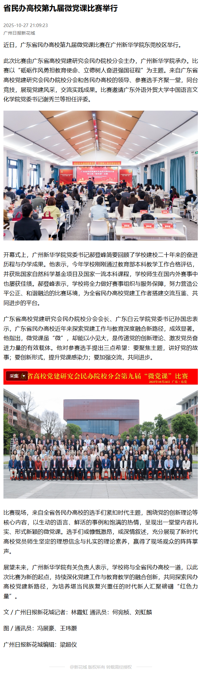 近日,广东省民办高校第九届微党课比赛在广州新华学院东莞校区举行。