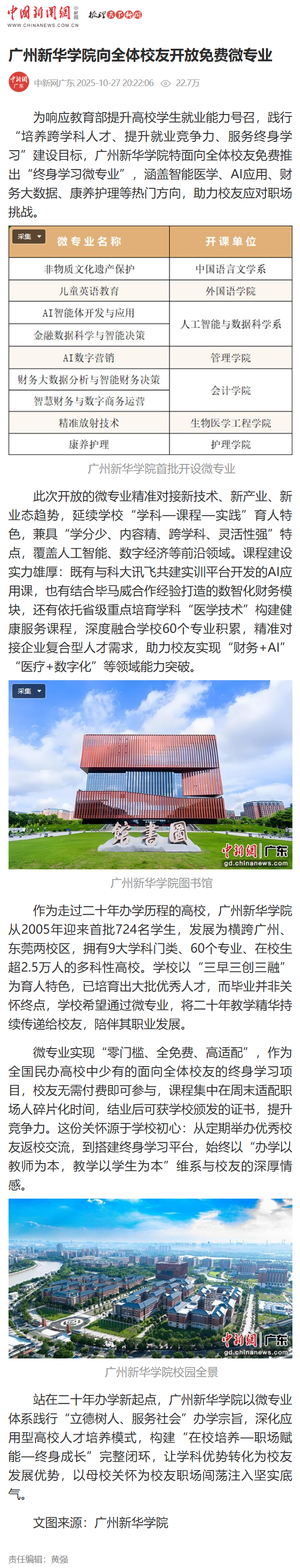 作为走过二十年办学历程的高校,广州新华学院从2005年迎来首批724名学生,发展为横跨广州、东莞两校区,拥有9大学科门类、60个专业、在校生超2.5万人的多科性高校。学校以“三早三创三融”为育人特色,已培育出大批优秀人才,而毕业并非关怀终点,学校希望通过微专业,将二十年教学精华持续传递给校友,陪伴其职业发展。