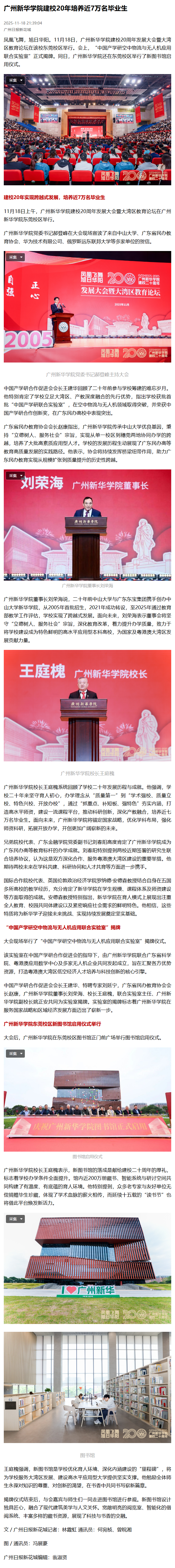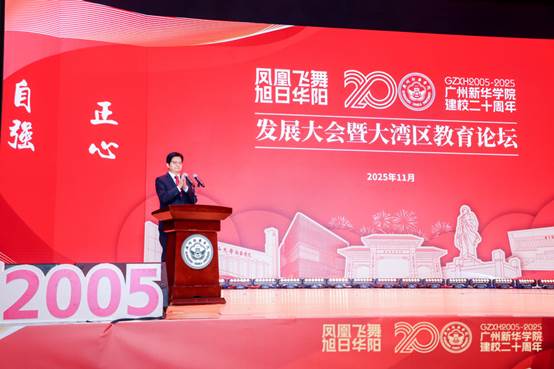 11月18日上午,广州新华学院建校20周年发展大会暨大湾区教育论坛在广州新华学院东莞校区举行。
