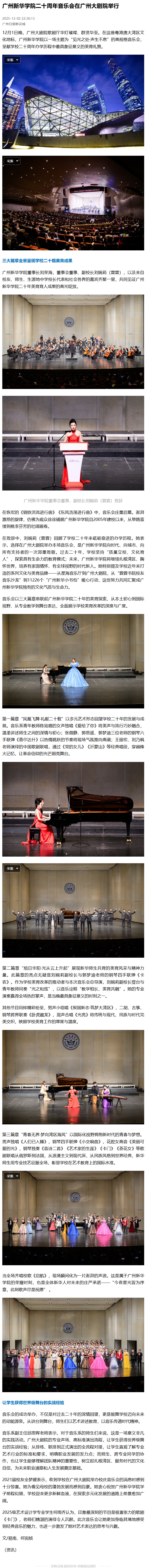 音乐会以三大篇章串联起广州新华学院二十年的美育探索,从本土初心到国际视野、从专业教学到舞台表达,全面展示学校美育改革的深度与广度。