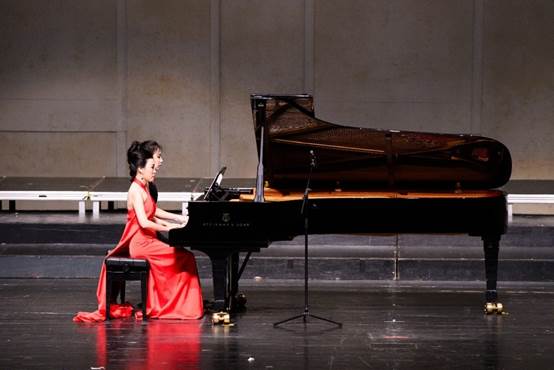 第二篇章“旭日华阳·光从云上升起”展现新华师生共育的美育风采与精神力量。此篇章的亮点无疑是刘婉莉副校长与郭梦迪老师的钢琴四手联弹《卡农》。作为学校美育改革的推动者与本次音乐会总导演,刘婉莉副校长登台与青年教师同奏“光之和弦”,以音乐诠释“教学相长、美育共融”。她的专业演奏赢得全场热烈掌声,是当晚最具象征意义的时刻之一。