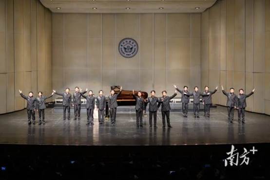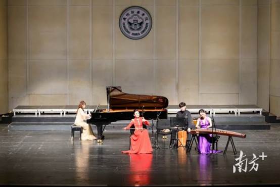 学校副校长刘婉莉与青年教师郭梦迪的钢琴四手联弹《卡农》是音乐会的一大亮点,她们以合作演绎诠释“教学相长、美育共融”。此外,男声小组演唱《报国新志·筑梦大湾区》,二胡、古筝与钢琴跨界合奏《卧虎藏龙》以及混声合唱《光亮》相继上演,将传统与现代、民族与时代在舞台上交织呈现。