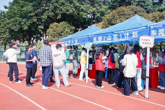 在考研考公咨询处,学校特邀广东技术师范大学、东莞理工学院、广东金融学院、惠州学院和韶关学院等7所高校研究生招生工作人员到场接受咨询,为同学们的升学之路答疑解惑。