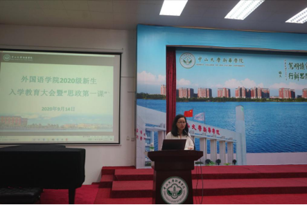 9月14日下午,外国语学院2020级新生入学教育大会暨思政第一课顺利举行。外国语学院(以下简称“外院”)党总支书记秦荔、执行院长廖益清、副院长邱易安、党总支副书记欧衍伽、院长助理兼商务英语专业副主任李文蓓、英语专业副主任李贻、西班牙语专业副主任许婷芳、西班牙语专业老师雷荷芸、葡语专业老师杨镒境以及全体辅导员出席,全体2020级新生参加了本次大会。本次大会由欧衍伽副书记主持。