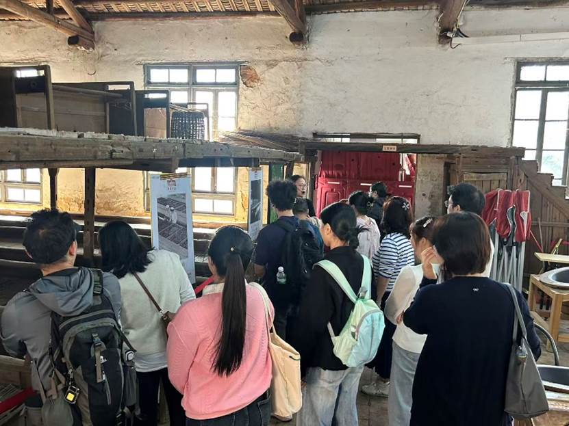 下午,党员们来到了英德红茶产业公认的发源地——红旗茶厂。作为“清风英九”廉政教育基地,红旗茶厂厚重的历史底蕴与鲜明的廉洁文化特色相得益彰。党员们依次参观了历史展厅、传统萎凋车间、手工制茶体验区及现代化生产车间,通过了解茶叶从采摘、萎凋、揉捻、发酵到烘干的全流程,党员们不仅品味了“茶如人生,先苦后甜”的哲理,更深刻感悟到茶文化与廉洁文化“清、静、淡、洁”的内在契合。红旗茶厂从国营到私营再到重归国资、焕发新生的历程,以及其作为推动“百千万工程”、实现三产联动重要抓手的当代实践,让师生党员对高质量发展、文化自信有了更直观的认识。