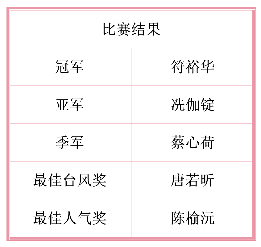 经三轮角逐,第八届Winners歌手大赛总决赛在各位选手的精彩演出中落下了帷幕,最终符裕华荣获本次大赛的冠军,冼伽锭、蔡心荷分别获得亚军和季军,唐若昕获得最佳台风奖,陈榆沅获得最佳人气奖。