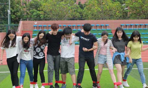 活动采取人员混编模式,由学生会各部门部长对干事们重新分组,每支队伍8人,每个小组设计出自己的的队名与口号,组内队员共同完成“地雷战”、“传数字”、“甩步机”和“两人三足”四个项目。