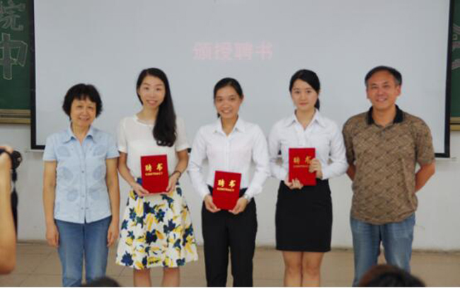 夏茵英副主任(左一)、李铭建副主任(右一)为分站指导老师和站长颁授聘书