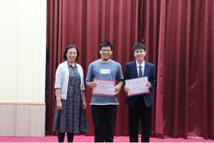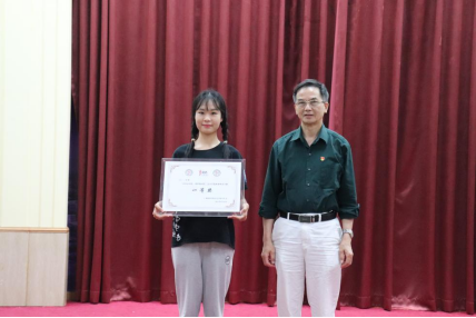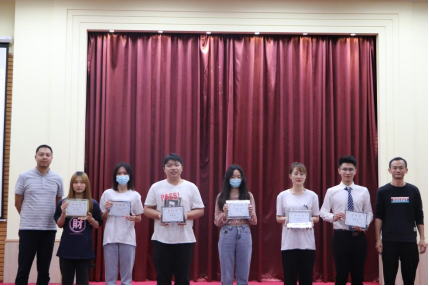 学院党总支副书记王沣(右一)和学院院长助理吴津钰(左一)颁发会计学院“班级风采大赛”优秀奖荣誉证书