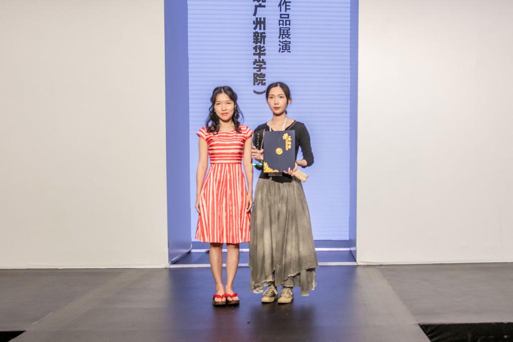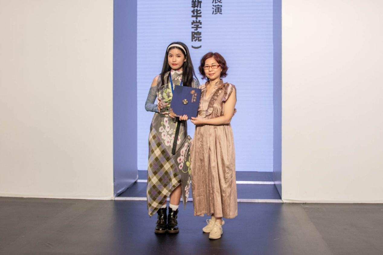 校长助理刘霖霖(左)为获得最佳工艺奖的设计师唐佩玲颁奖