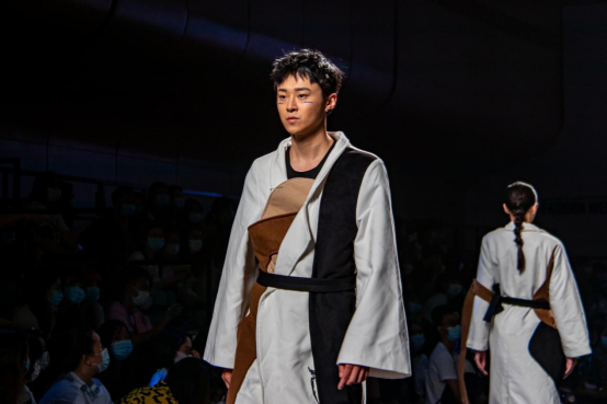 18级网络与新媒体专业的杨艺作为观众来到了现场。在观看完众多优秀设计作品后,她表示最让自己印象深刻的是《他们》系列作品。模特宽大的衣服与脸上的面罩,给了她很大的视觉冲击。她还谈到自己很喜欢此次展演,因为设计师们将自身生活经历的感悟与对时代的理解融合进了设计细节之中,为她带去了一场视觉盛宴。