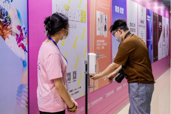 志愿者引导观众做好防疫措施