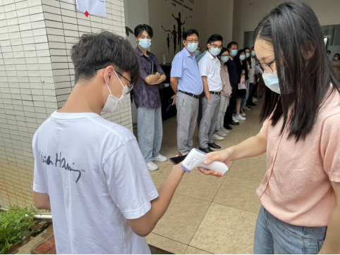 体温异常学生转移至隔离点后由医护人员再次测温,若体温依旧异常则将该学生送往定点医院,待医院核酸检测结果出来后,老师组织疏散同堂学生。