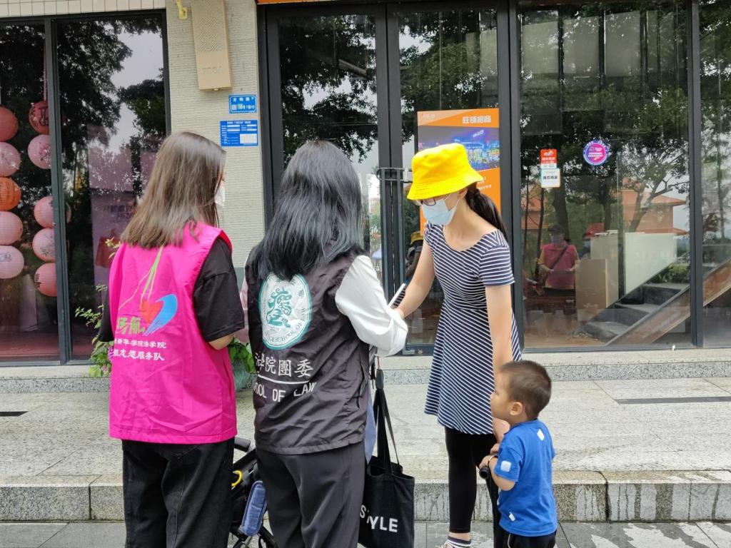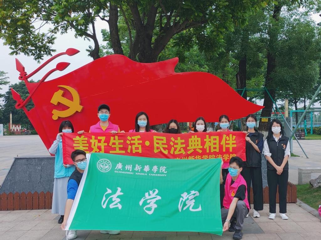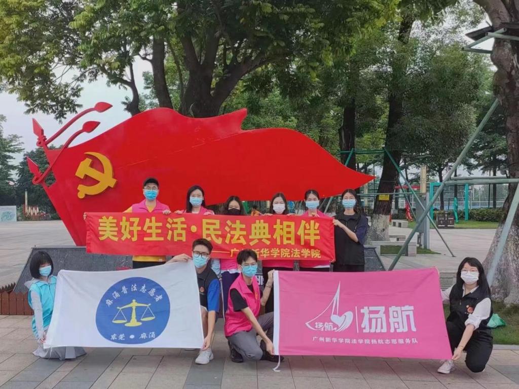 广州新华学院法学院团委、法学院扬航志愿服务队和麻涌镇普法志愿服务队共同组织开展华阳湖民法典线下宣传活动