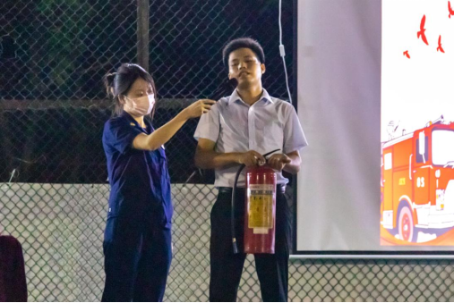 在科普消防安全技巧时,吴祖浓讲师以“一个未熄灭的烟头导致火灾”的实例作为开头,强调消防安全重于泰山,提出防患于未然的重要性与必要性,并与在场的新生们进行现场互动,增进知识科普的趣味性。他提醒同学们在生活中要注意排除消防安全隐患,要及时关闭大功率电器、注意电池充电安全等问题,以此预防火灾事故的发生。随后吴祖浓讲师还详细讲解了火灾事故发生时的应对方式,现场演示了灭火器、防毒面具的使用方法,并希望同学们在关键时候能“想得出、用得对”。