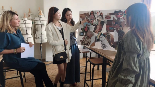 我校艺术设计与传媒学院邵诗茹老师毕业于巴黎ESMOD时装学院。邵诗茹老师向ESMOD巴黎总校校长Christine Walter-Bonini女士介绍了我校艺术与传媒学院的基本情况和2017级服装与服饰设计专业同学的学习情况后,ESMOD时装学院特意为我校参与游学的同学们“量身定制”了此次时装设计专业学习课程。