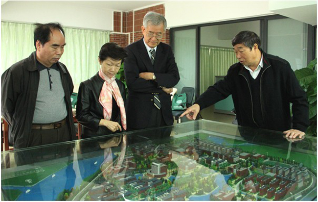 图2 我院党委刘美南书记向来访客人介绍东莞校区规划蓝图
