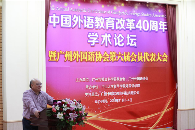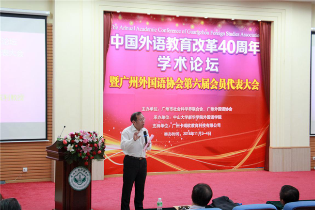 广州外国语协会会长、广东外语外贸大学教授、博导欧阳护华教授作主旨演讲