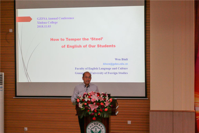 中山大学新华学院外国语学院执行院长廖益清教授作主旨演讲