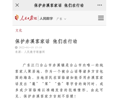 人民日报文章链接:《保护赤溪客家话,他们在行动》