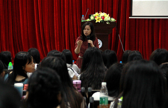 10月17日下午,中山大学外国语学院博士生导师曾蕾教授应邀来我院开展以“英语学术论文写作”为题的学术讲座。讲座由教务部主办,外国语言文学系承办,外语系廖益清主任主持。黄继炎副主任、系青年教师代表以及外语系2011级全体学生参加讲座,教学楼D101室座无虚席。