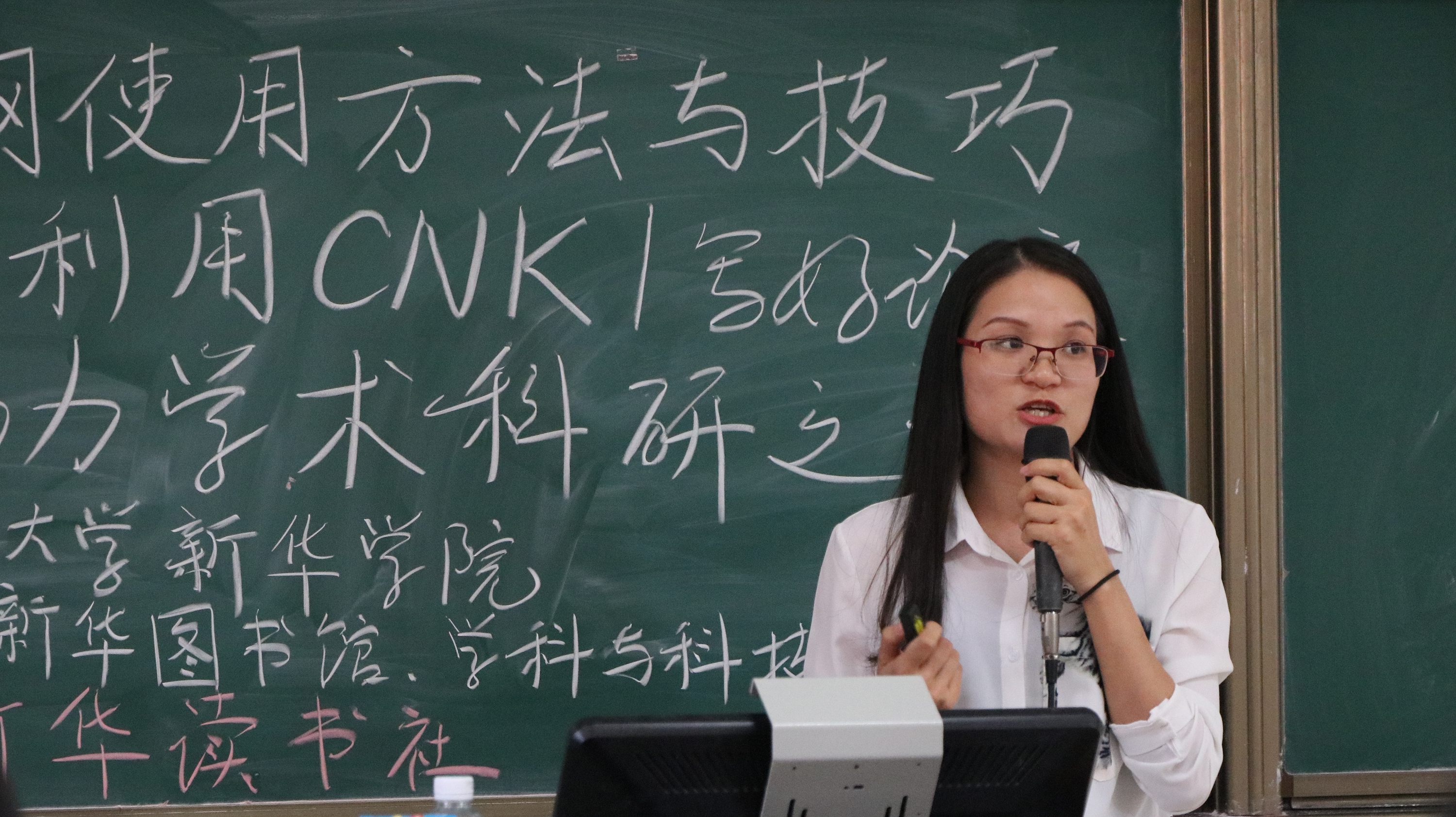 詹玉萍讲师向师生介绍如何利用中国知网数据库