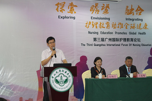 广东省教育厅高教处处长、华南师范大学博导郑文教授为论坛致贺词,详细介绍了广东省护理教育的现状,并预祝此次论坛圆满成功。