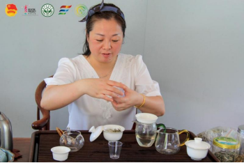 金醇红茶厂负责人何勤燕为实践队队员冲泡白毛茶