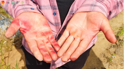 现代蔬菜农业产业园技术员夏伯伯的手