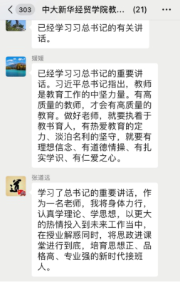 周慧敏老师:作为一名教育工作者,我深刻理解习近平总书记指出的“有高质量的教师,才会有高质量的教育”。在教学工作中,所有教师都应时刻谨记自己的职责,坚守为党育人、为国育才,努力为国家的教育工作贡献一份力量。